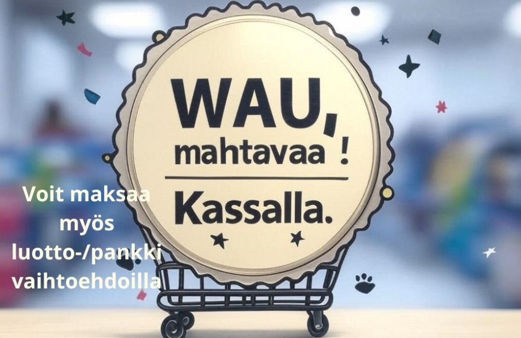 Pankki- tai luottokortti (debit/kredit) – maksa suoraan kassalla. Saat jopa lisää maksuaikaa, ja tuotteiden toimitus nopeutuu!