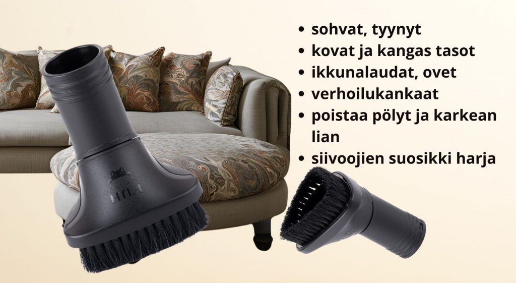 - Sohvat ja tekstiilipinnat: Karvojen ja roskien poisto tehokkaasti