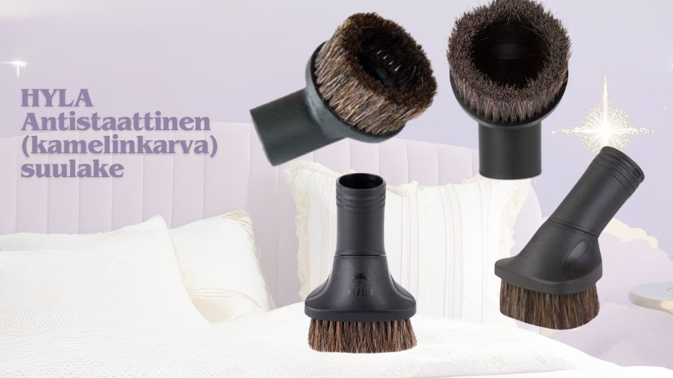Näihin kohteisiin suosittelemme antistaattista kamelinkarvasuulaketta.