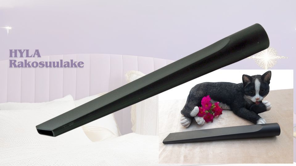 Jos tarvitset vielä enemmän ulottuvuutta, saatavilla on myös pidempi 35 cm versio (tuotenumero 14039), joka sopii HYLA NST ja GST -malleihin. Tämä suulake auttaa puhdistamaan syvempiä rakenteita ja laajempia alueita – esimerkiksi lämpöpatterien välejä tai kaappien takaa.