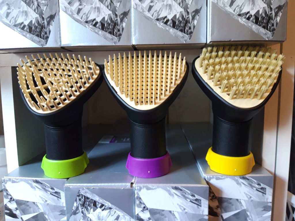 • Suunnittelussa on huomioitu suulakkeen käyttömukavuus: Käteen sopiva muotoilu ja useampaan suuntaan kääntyvät nivelet antavat harjan käyttäjälle mahdollisuuden työskennellä eri asennoissa. Muodon lisäksi paksut karvat kulkeutuvat harjatessa eri suuntiin asettuvien rakojen kautta suoraan Hylan vesiasiaan, jolloin karvoilla ei ole mahdollisuutta jäädä leijumaan huoneilmaan.